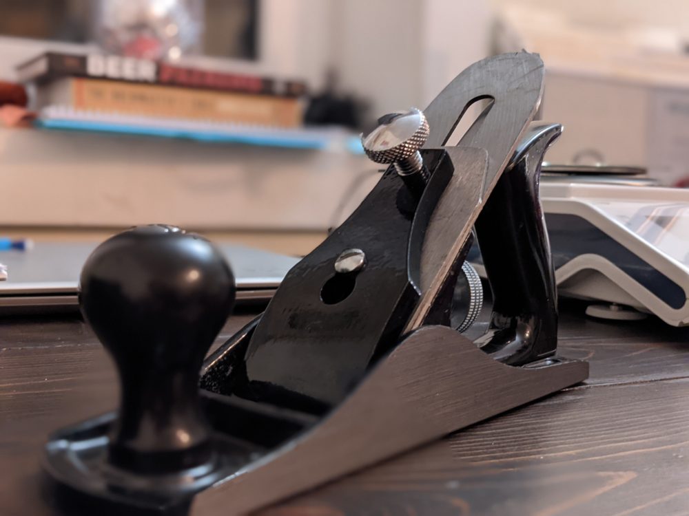 After a couple hours of sanding, I decided that I needed a better too for the job. I quickly hopped on Amazon and ordered a bench plane. That was a mistake. Shortly after receiving that plane, I ordered a better one from Home Depot. While still not amazing, the Home Depot plane was much easier to adjust, leading to better results