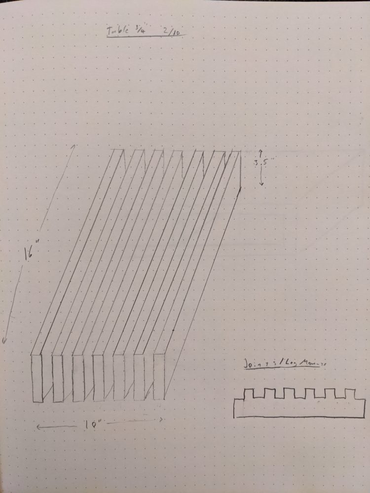 Hey Brayden. Thanks for the compliments! In response to your comments about stain and mitered corners, all I can say is that I ran out of time. The planing and sanding took much longer than I thought it would. Additionally, I had to wait to get the plane in the mail. Ultimately, this led to me rushing to get the sides of the table on and have a finished product in time for presentation in class. I think that I might do some more work on this table in the future and make some of these changes. What I may end up doing is taking all of the side pieces off, mitering corners and then replacing the angle cut with a taped paint line over stain. This would appear quite similar visually without having a hard corner to run into. The reason behind all this is because I will want to take the legs off of this table and use it as a work bench. I realized while building this that I really need a good work bench.