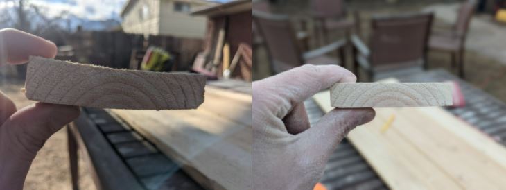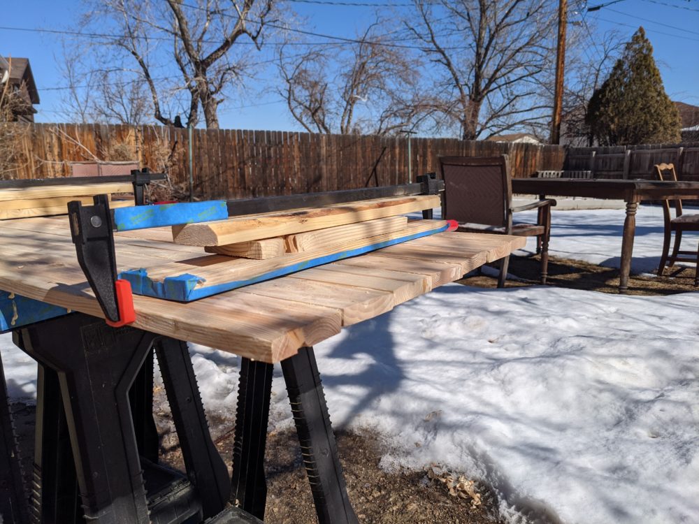 I started out using a belt sander with a coarse grit. This approach worked in truing and squaring up the lumber, but was loud, difficult, and dirty. Luckily, this little pandemic thing means that I have a lot of masks laying around that helped keep sawdust out of my lungs, but it wasn’t perfect.