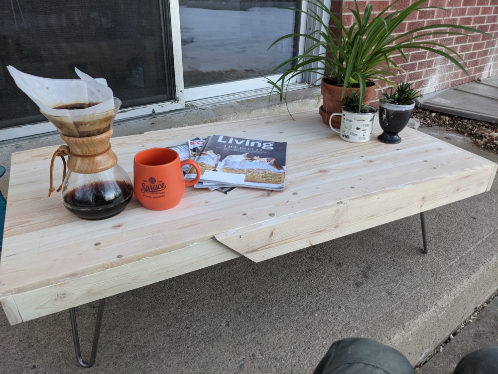 The more I thought about it, though, the more I began to poke holes in the idea. First, I wondered about the practicality of a coffee table that has all of those empty slots. I thought that maybe that would be nice if I had a large piece of glass to put over it, but I didn’t. Then I thought about how hard it would be to connect the boards at even spacing. Additionally, if my boards were anything but perfectly straight, the table would look really bad. Based on these thoughts, I decided to look for some different designs for inspiration.