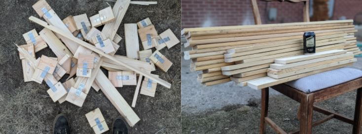 For my upcycling material I used discarded wood. I work in the lab at Upslope Brewing Company, a local brewery. This summer I worked on the packaging team to make some extra money while not in class. Due to Covid, aluminum was in short supply, and we had to order from different suppliers than usual. All supplies that we receive pallets from want their pallets back, but for some reason the supplier that we ordered cans from a few times was not interested in getting back the wood that they put on top of the cans in order to strap them down. These particular tops were made of 1”x3” pine boards held together by metal gussets. As an ametur (and broke) woodworker I saw a bunch of good workable wood. My coworkers just saw them as trash, making it easy for me to claim them for myself.
