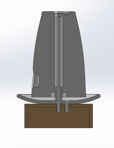 The model in the image above is basis for what the Topology Optimization tool takes away from. There is a channel throughout the middle of the component for water to be pumped up though and then grooves down the side of the part for water to flow down. I am using a bearing at the bottom of this piece where hopefully in the absence of friction and the water flowing at an angle down the side will cause the whole thing to spin. The figure below shows a cross section of my design for the fountain: