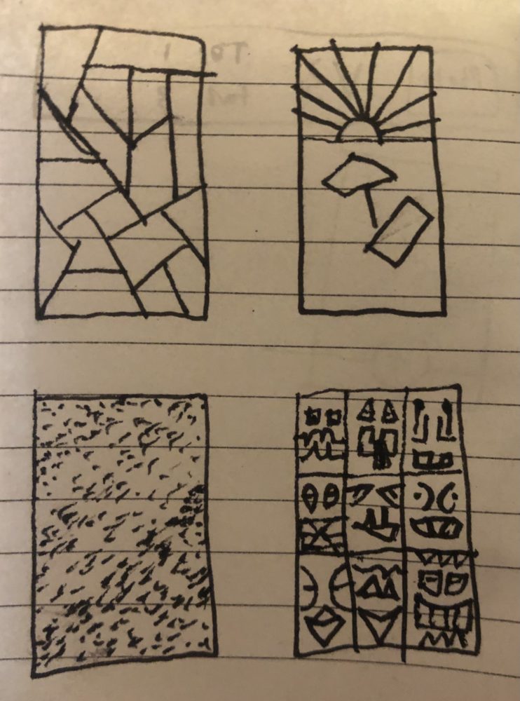 For the mural (which is painted on the chair when flat), I originally liked the early American tattoo aesthetic. As part of the activity for this blog post, I sketched 4 different ideas for alternative murals. (From left to right, top to bottom) the first is an abstract geometric design, then a beach scene, then particles of varying density, then tiki faces. The abstract design may play to a certain design movement, but the one featured is mosaic shapes. The beach one is kind of a minimalist representation of a scene you might see in a more realist style. The particles would be an interesting way of representing something. From up close, It would just look like dots, but from a far, it might make up an image, scene, pattern, etc. I think that there is real potential to utilize this general idea, and it made me think of using a soldering iron to burn the wood (an idea I hadn’t considered prior to this). The final Idea is tiki faces. I like this one because its simple but also fun, and it goes with the form in the sense that it is boxy and modular. I think this modular idea could pair well with some of the other Ideas I have had.