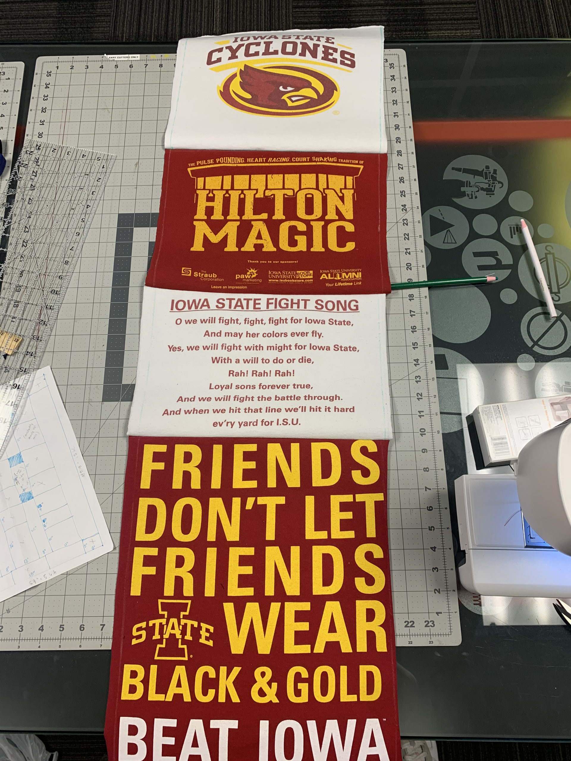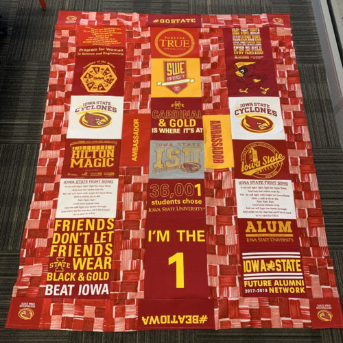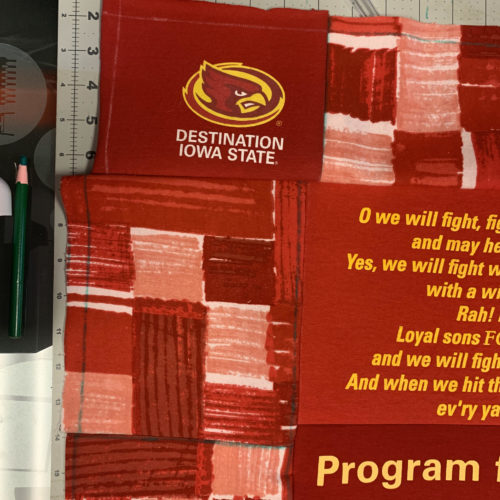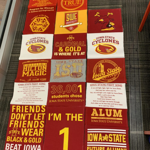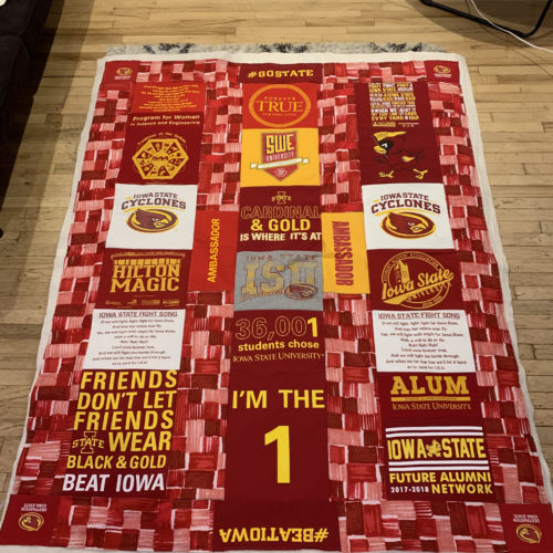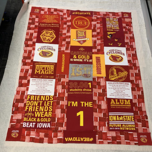 For my project, I decided on making a t-shirt quilt out of my sister’s Iowa State University t-shirts. This falls into two aesthetics that I have explored in the past. The first being the aesthetic I used for my Upcycle Project: Old School Athletics. The second is my personal aesthetic: comfy coze. Since the shirts are 4 to 8 years old and are worn, they’ve got that old school university feel. Plus the Iowa State school colors are red and yellow, which is a pretty classic color combination. As we saw in the LinkedIn Learning video “The Red Effect”, the color red can present as a fear factor when worn on sports uniforms, so it makes sense for a large university to use this color. I imagine this quilt accompanying a couch surrounded by cyclone fans cheering on the basketball team during march madness. The aesthetic has a lot of school pride, which is also depicted in the images below.