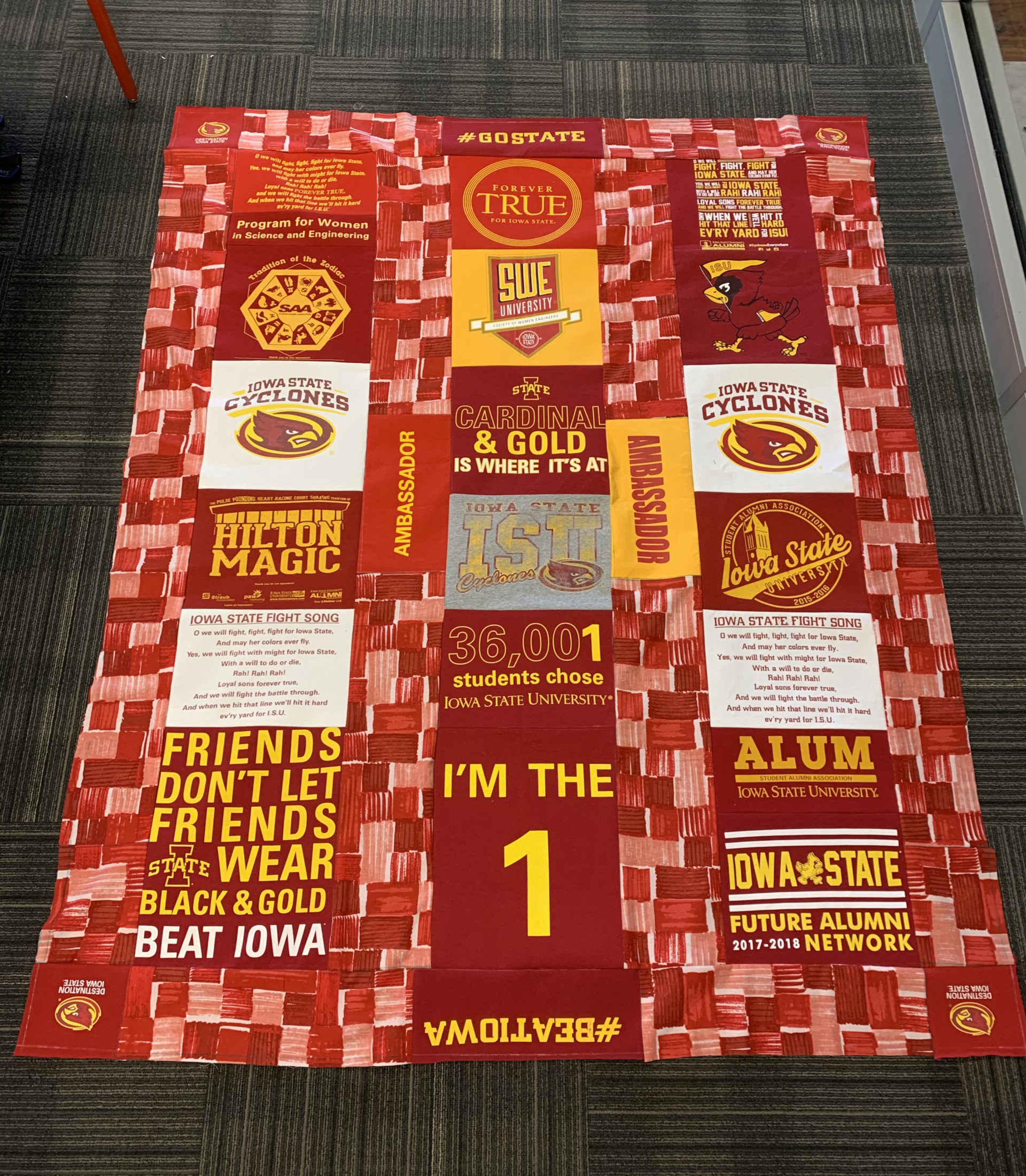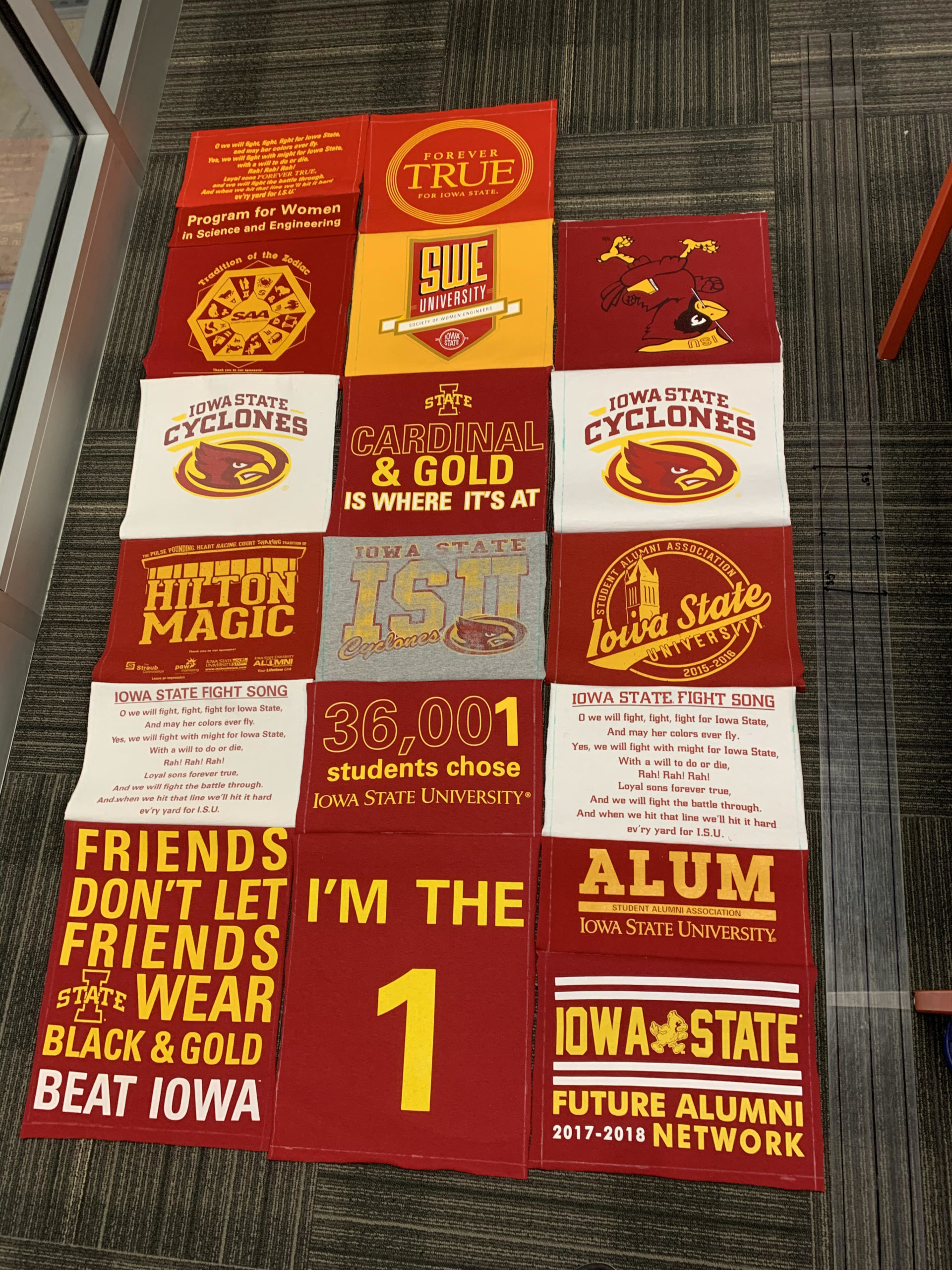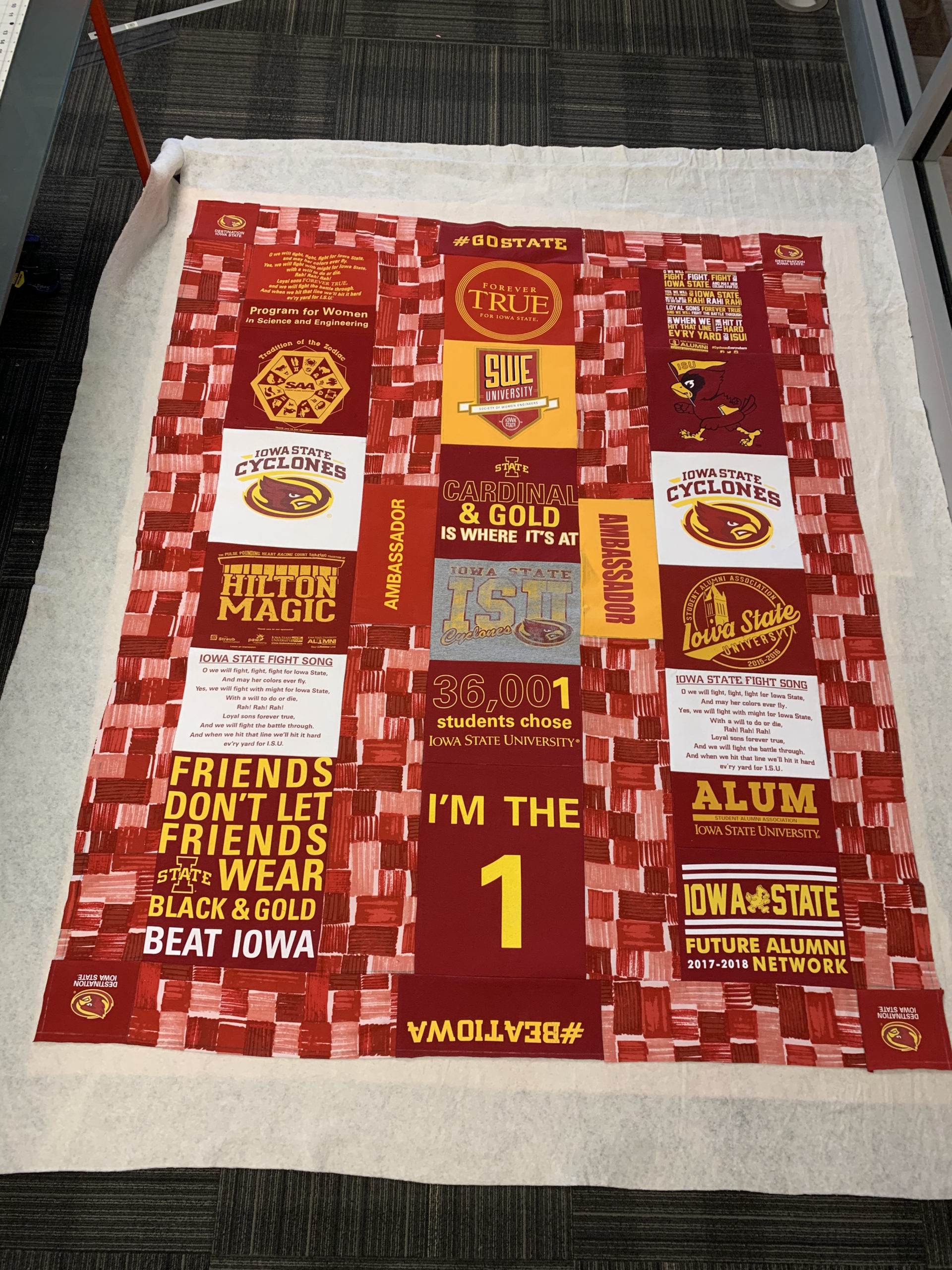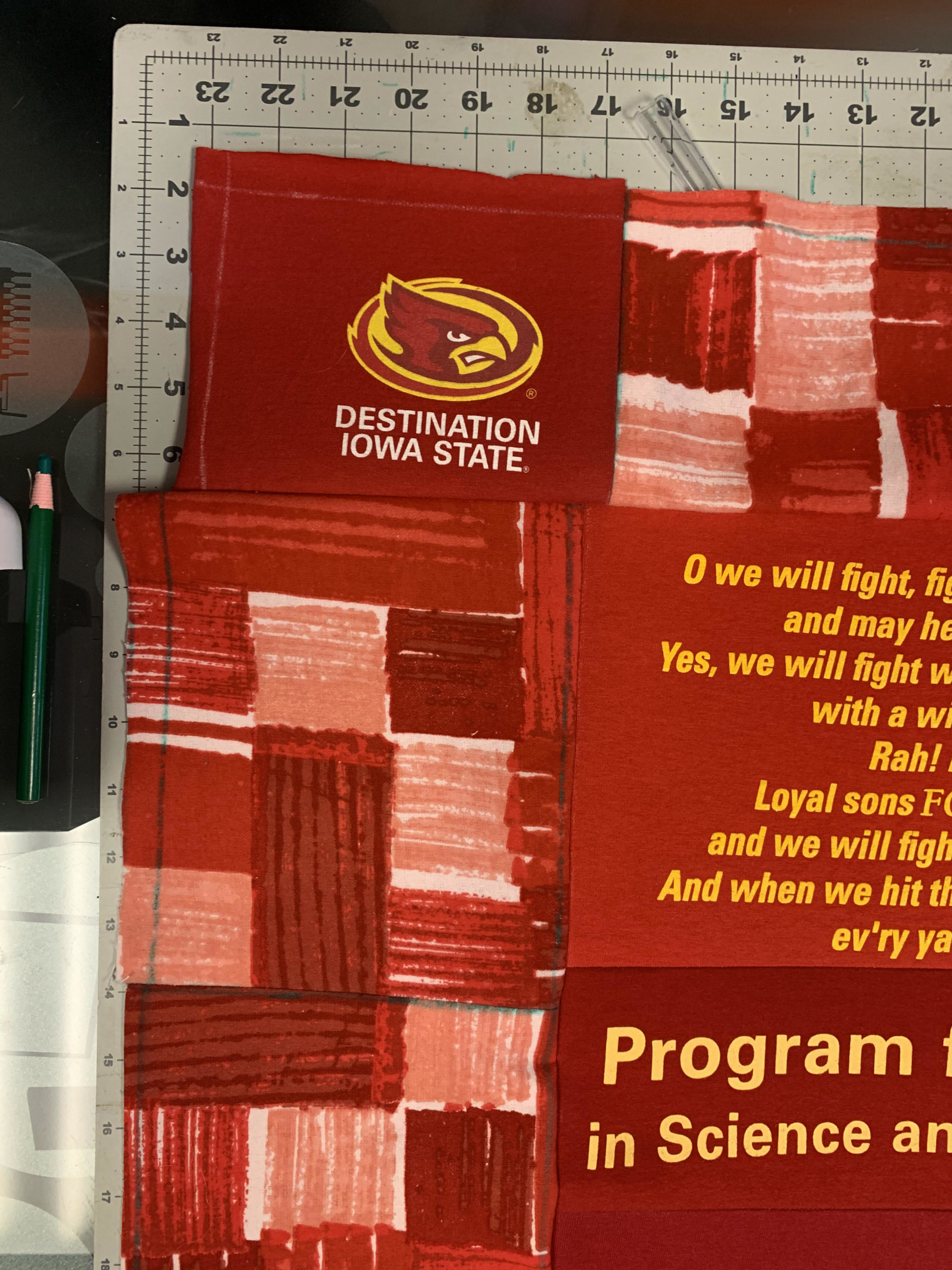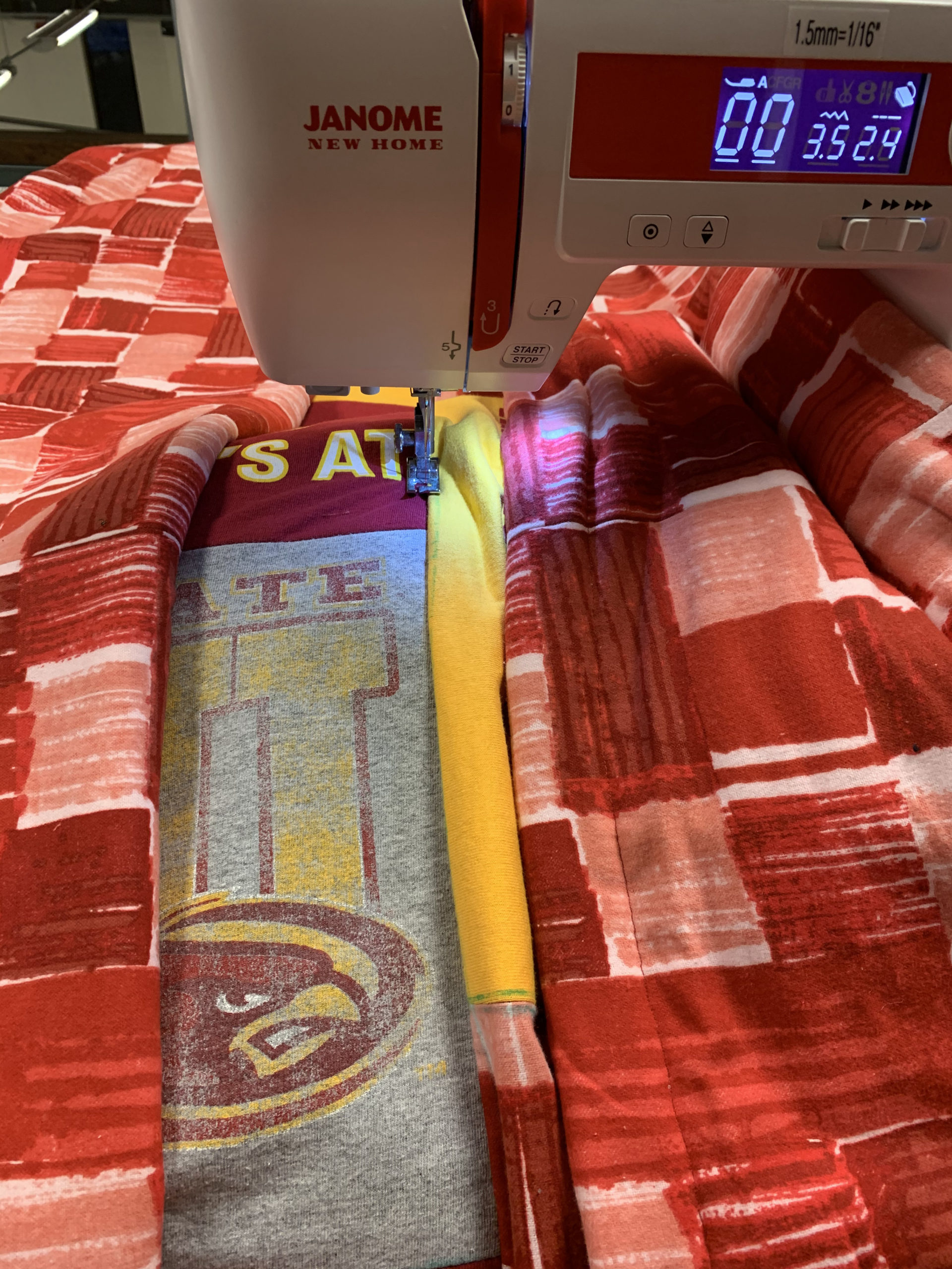 - Because this is a quilt made of t-shirts from a specific university, it should meet my old school athletics aesthetic. With red and yellow being the most dominate colors in this quilt and also being very prevalent in many universities sports uniforms and other paraphernalia, I should be able to meet this aesthetic just by virtue of the fact that I am using these t-shirts.