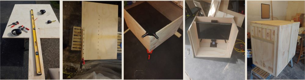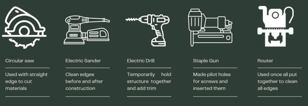 In the design preview post I went in-depth on the manufacturing process of this design which also gives the guide to making this project, TV Lift Cabinet Guide. Due to that Figure 4 briefly reiterates the process with how each of the tools were used.