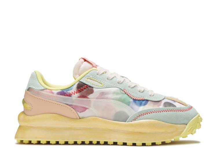 When taking a look at the Louis Vuitton show, it is clear to see that the aesthetic of KidSuper was pervasive throughout the event. From the set design, to the individual pieces, everything had a colorful, child-like flare. In fact, the consistency of the aesthetic is perhaps most apparent in the brand’s collaborations. In these KidSuper x Puma shoes the fundamental elements of KidSuper are clearly evident.