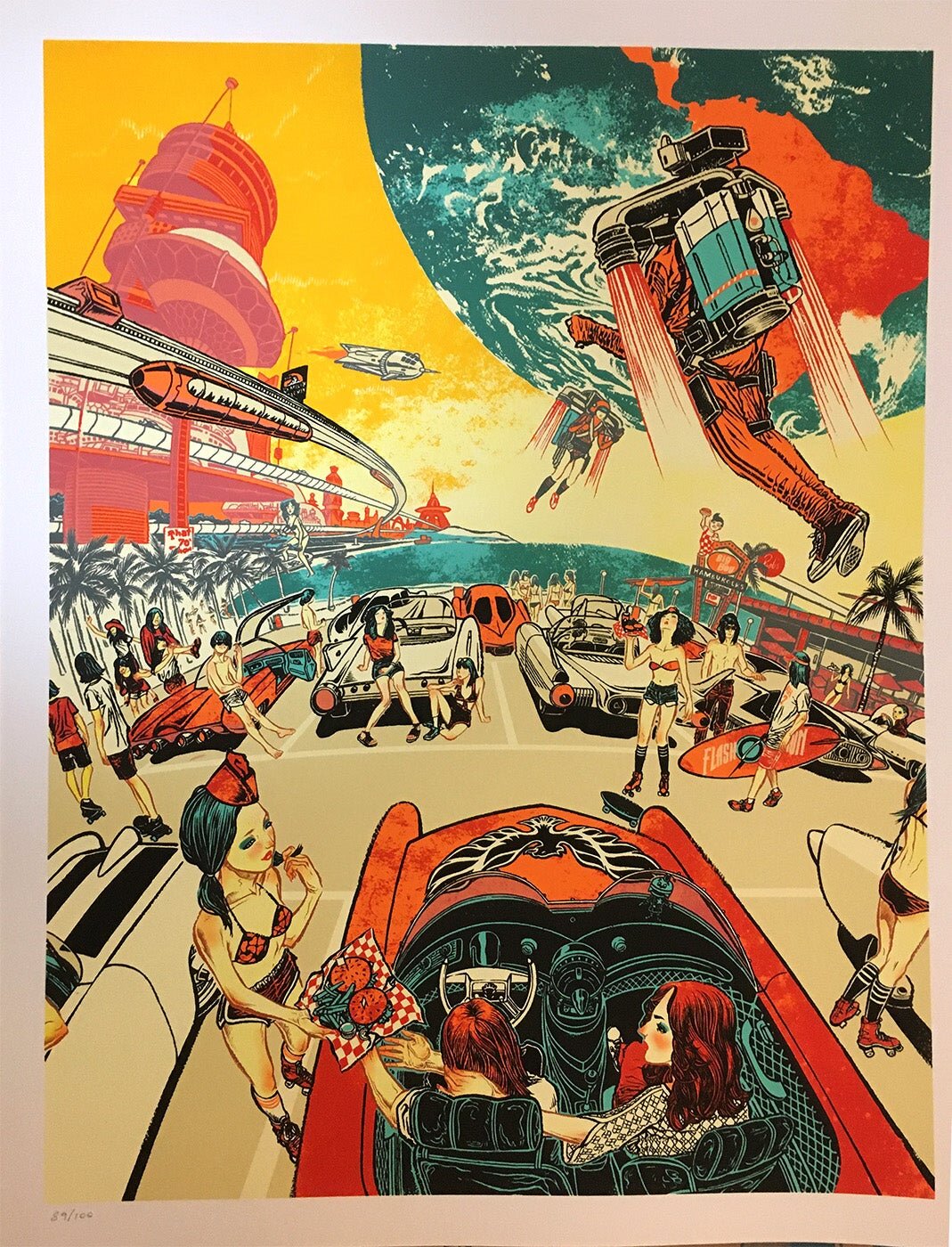 These days, people still make retro-futuristic art, but typically not in the same way as they did in the 1900s. Today most of the artists I’ve seen that use this aesthetic do it more like a collage made in PhotoShop. They take drawings from old ads and articles from the “retro” time period, stitch them together, and add their own marks and effects to help the pieces come together as a whole. This technique can result in some truly gorgeous and astonishing images in my opinion. I would have liked to have included some of my favorites from Instagram, but often times it’s hard to find the original artist and date of the work. Still, I think it is worth mentioning.