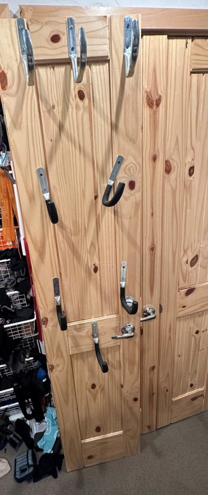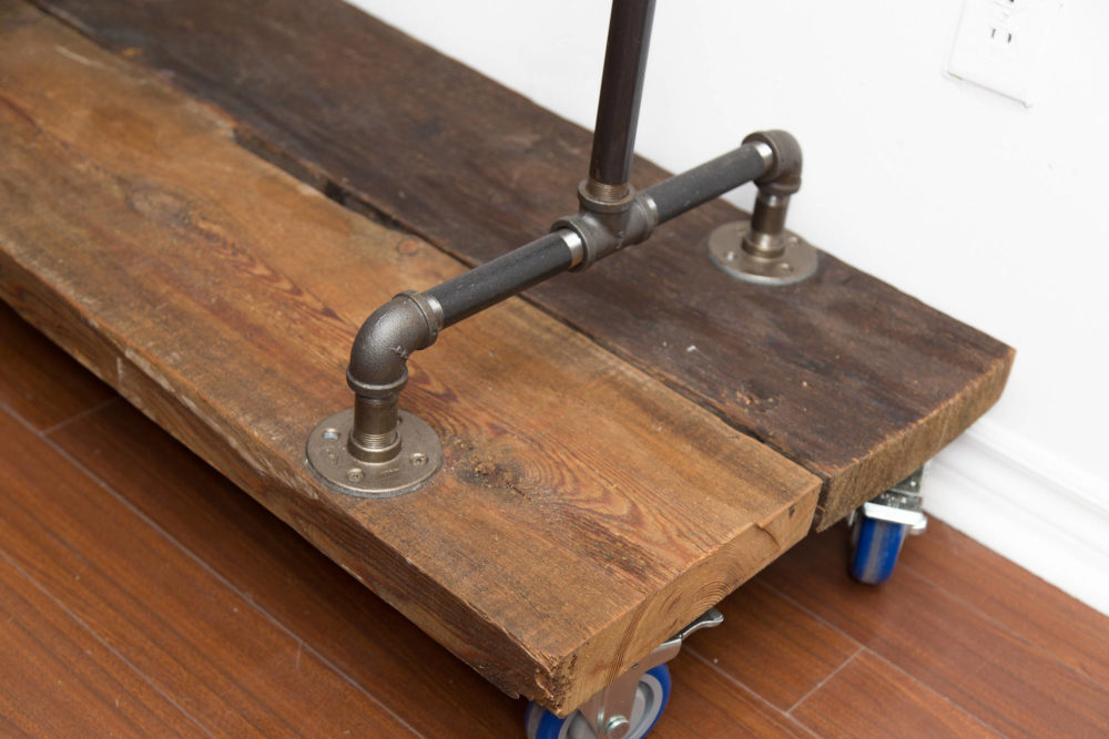Most of my gear is currently stored in my closet, so it would be nice to better use that space. Perhaps I can upcycle some sort of rack onto my closet door with an industrial aesthetic. I realize that the light colored wood doesn’t look super industrial, but I think it could pair well with a steel or copper metal.