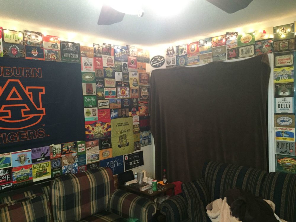 The wall is a representation all of the time the occupants have spent together. The size of the beer wall grows alongside the relationships of the members within the household, especially if they were strangers when they moved in together. Each beer case has a memory attached to it, whether that be a party or just sitting around and being with the people you care about. It also gives an observer an insight into what kind of beer the occupants enjoy and is a way for the occupants to express their taste. A beer wall is something you are only going to see in a house of college students, so this taste is going to consist of cheap light beers such as Coors Light, Busch Light, or Bud Light to name a few.