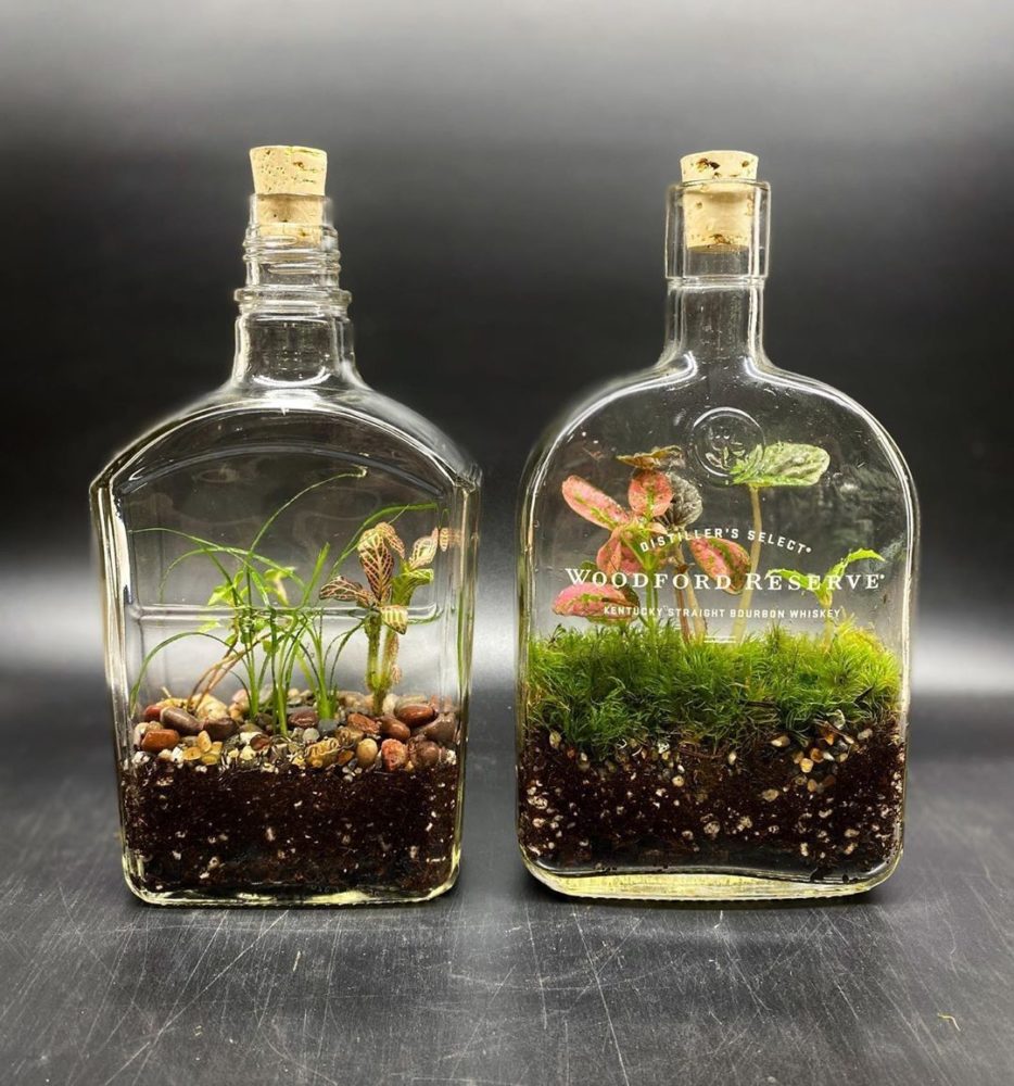 The second idea that I have is to create a terrarium in a used alcohol bottle. A terrarium is something that I have been wanting to build for quite a while and I feel that this may be the perfect opportunity. I have a few empty liquor bottles with me and the mosses and other stuff that go into the bottle can be found at dollar tree.