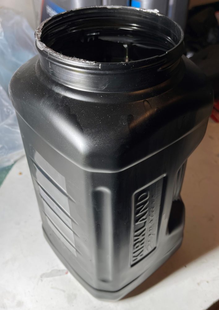 The fabrication process for this project included many things that I had not done before, or had not done much of within recent years. I started with the empty container of peanut butter pretzels that I had just finished eating. I first removed the labels carefully with a knife, although I realized later that a heat gun would have been helpful with this. I then masked off the window and painted it with paint I already had in my garage.