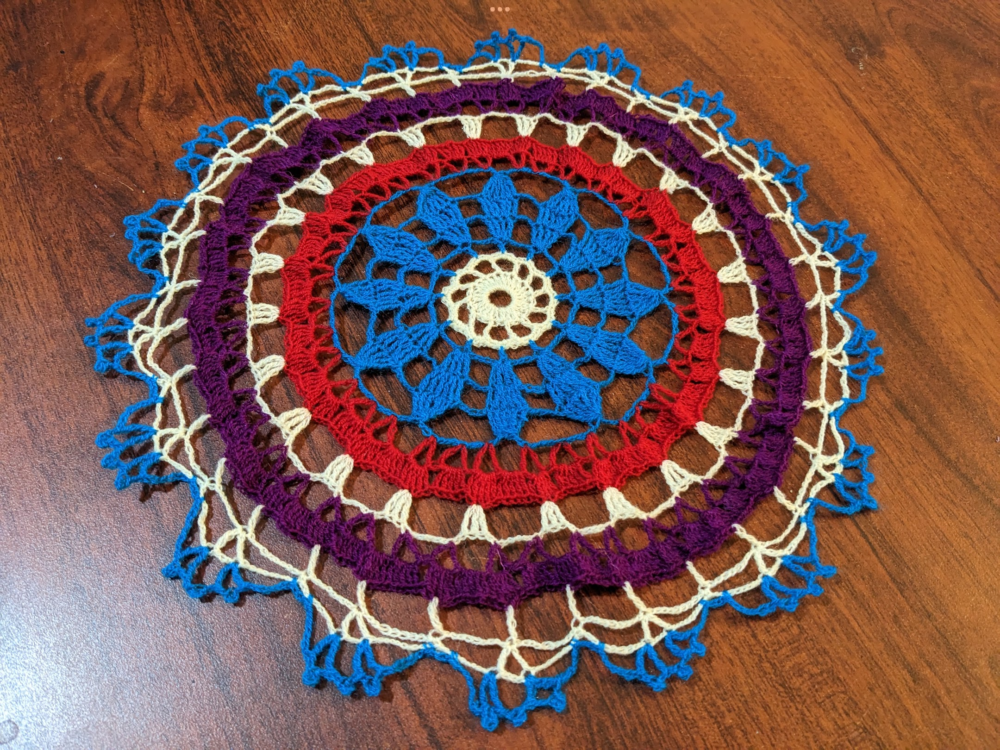 I had already purchased some varying colors of yarn from a shop in Manali, and had my crochet hooks with me on the trip. So I asked Kamlesh if I could make her something, and she told me the exact colors she wanted in the design. She enjoyed the resulting crocheted plate cover I created, pictured below. This reinforced that I’m on the right track for the color design of this project.
