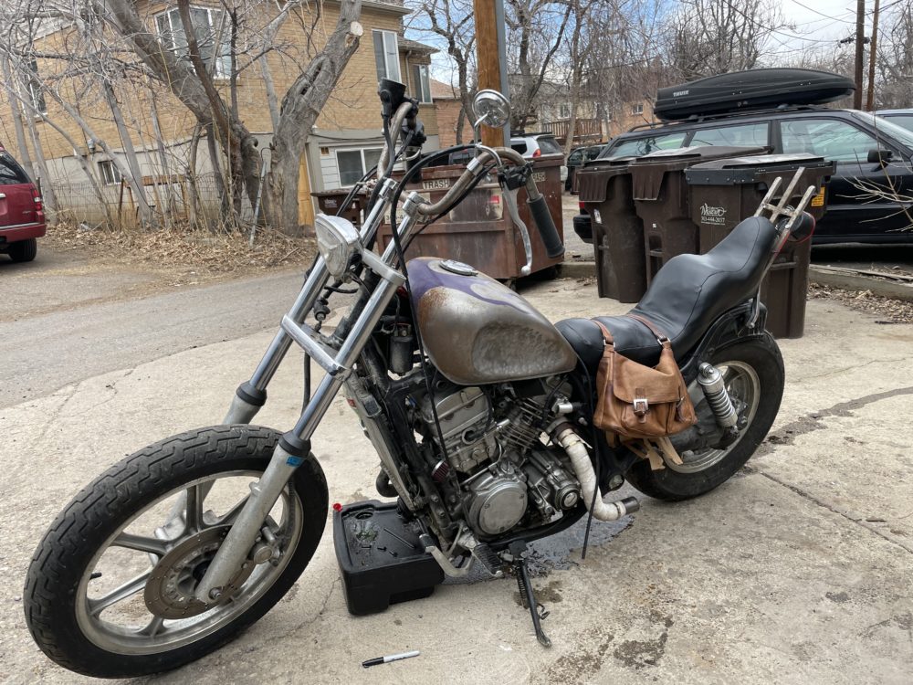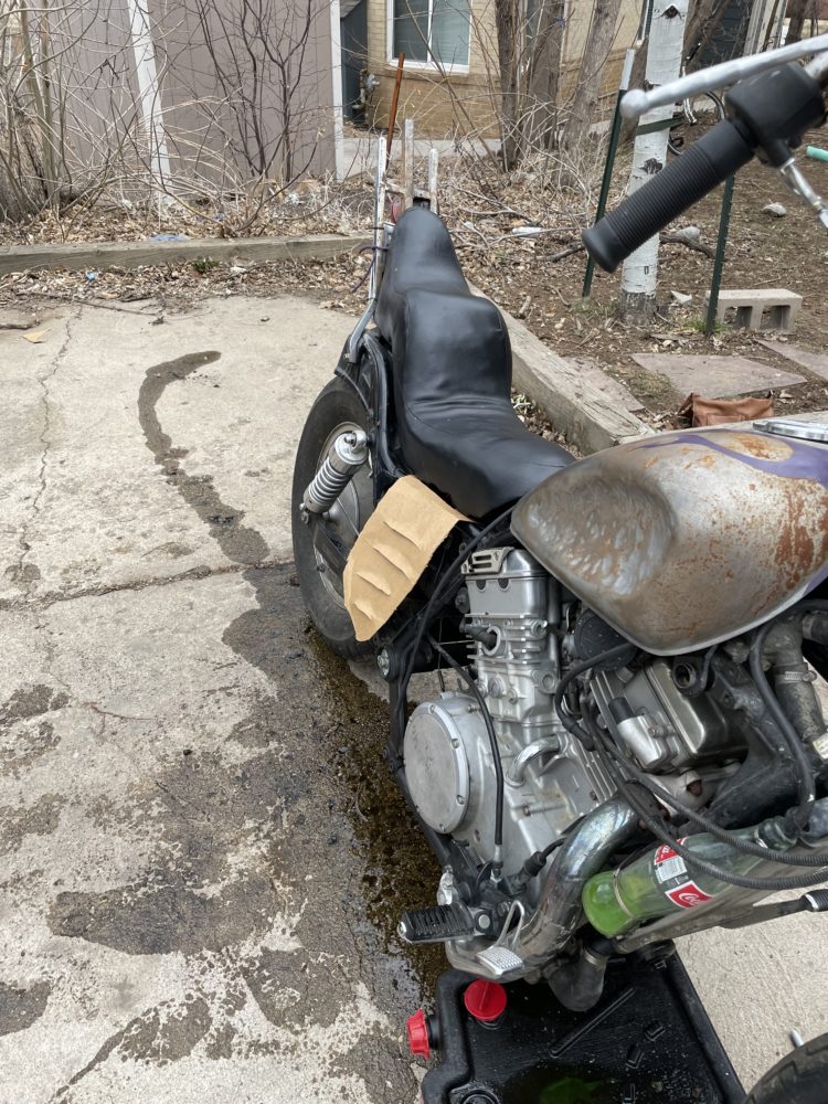 After mocking up the cardboard, I mentioned the idea of filling the space with some small saddlebags. Most current bags sit over the rear shocks and are bulky, not really fitting the slimmed down aesthetic of 70s style choppers. Luckily my friend had a smaller leather bag with her, and I threw it over the seat to check it out. I’m liking that a lot too, it would be a cool and helpful addition.