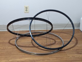 Upcycle Progress: Bike Rim Tensegrity Sculpture
