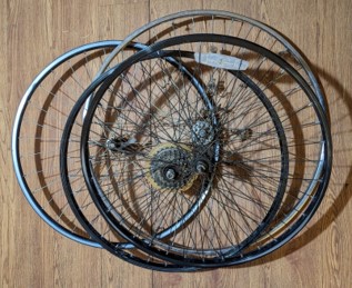 I finalized the design from one of my crude sketches and started with removing the tires, tubes, hubs, and spokes one by one on all the 4 bike wheels that I have. All of them had exactly 36 spokes and nuts each, which I sorted to utilize later.