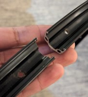 In order to intersect two bike rims, I had to cut one of them, pass through the other, and rejoin the cut. It was joined tentatively using zip ties and super glue, I will fasten them together and this would be the only instance I would need to utilize external fasteners for the structure as per my requirement to minimize their use.
