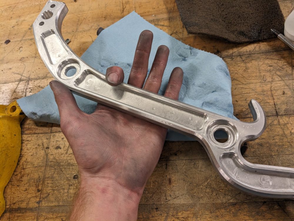 From these blanks the tools emerged, each taking about 5 to 7 hours of pure run time on the CNC, taking them all the way from blank to outline to contour to a rough cut of the final form.