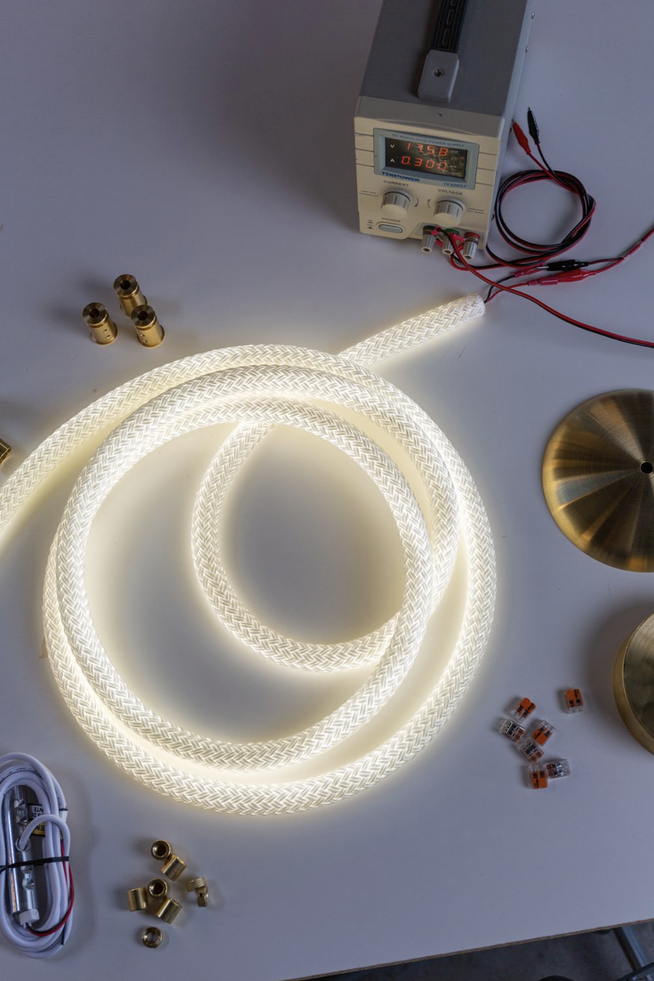 This project has allowed me to explore my creative expertise and realize many of the issues and problems commonly found when designing and manufacturing an artifact (or in my case a light fixture). When this project started, I really drove to create a light similar in aesthetic and quality to those that come out of Luke Lamp Co. Ever since I stumbled upon their website/studio I was intrigued at the way they can create light fixtures in a new and unique way. While they have a variety of fixture types from pendants to sconces etc… all of their designs use a unique diffused LED strip that has a textured woven braid wrapped around. This allows for a seamlessly textured light rope to wrap or bend in any desired direction.