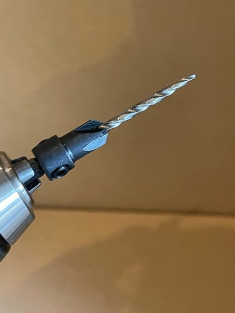 - I then drilled the pilot hole with the countersink drill bit and verified the holes were aligned and where they belonged.