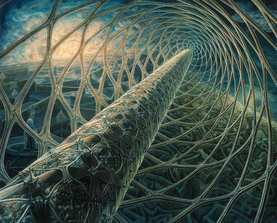 Fantastic realism is an art style that emerged in Austria in the middle of the 20th century. Fantastic realism depicts images that can’t really be explained, but drawn in the style of traditional realism, combining abstract art with incredible realism technique. It is described as ” dreamlike visions from the subconscious painted in a realistic manner”. Coming in the wake of World War II, It often has themes of birth and vitality, combined with brutal themes of death and war. The pieces are often very chaotic and highly detailed, but difficult to interpret exactly what you are looking at. What makes this style intriguing to me is that it feels like its depicting a scene or place that actually exists, but you know that it doesn’t. It feels both human and non-human at the same time.