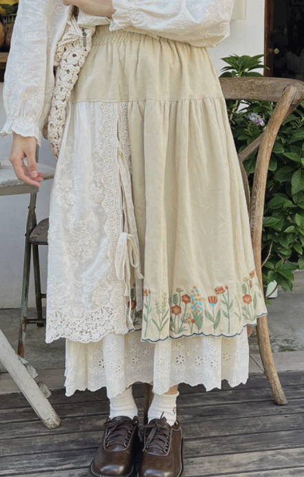 The cottagecore aesthetic encapsulates clothing, as well, where bright, dainty patterns and flowy fabrics are worn. The following crocheted bag and skirt by The Cottagecore clothing company(3) are examples of this aesthetic brought to fashion.