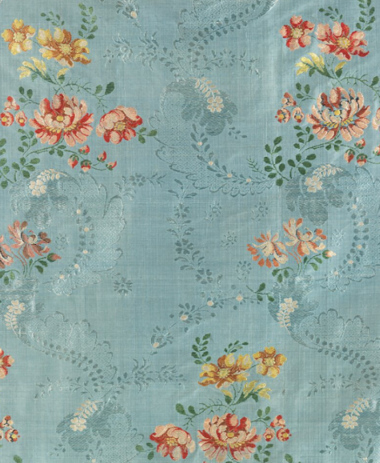 The image below from The Collector(6) of Marie Antionette highlights the delicate cottage core clothing, and the second photo is fabric taken from one of her gowns showcased in the The Metropolitan(7) museum.
