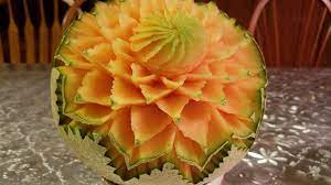 In Thailand, they appreciate the floral aesthetic in many ways, and in particular, they like to create floral designs in melons. This practice dates back to 1364, and has occurred in schools ever since then. It has become a national competition, and a source of pride among the locals. For my upcycling project, I would like to create such a design, and hope to do so with a cantaloupe. It will conform to a floral aesthetic, with petals circling around the “seeds”. An example can be seen below.