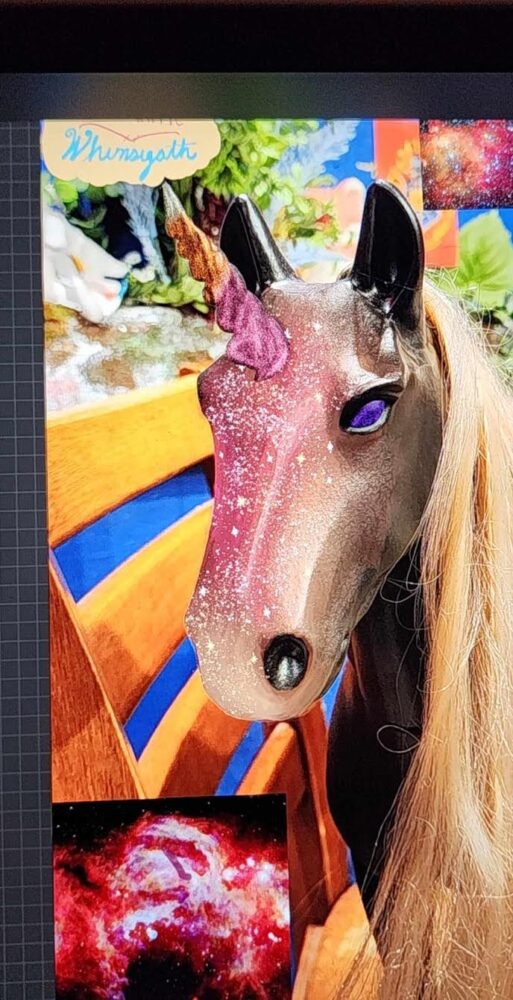 I have started on the face of the horse, focusing on a fun, whimsical celestial themed nebula.