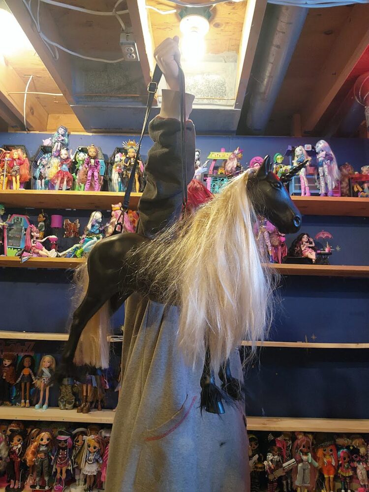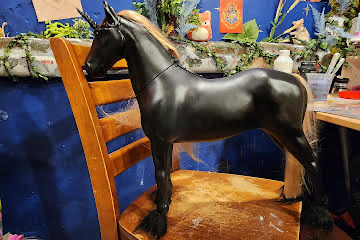 Summary: I acquired a used, beat up toy horse from Goodwill with another idea in mind. Upon getting the horse I became inspired, sketching out a concept of what I imagined. I went with the plan 1 and have since primed the horse and attached all hardware necessary to make it a functional purse.