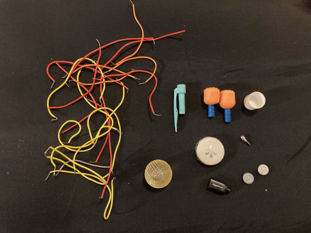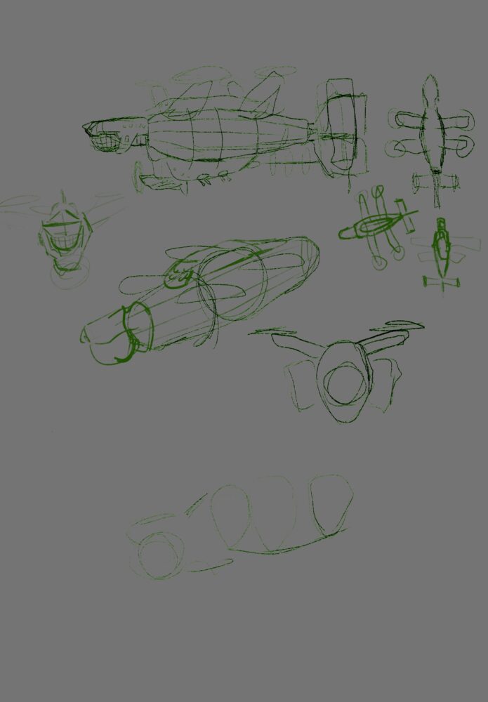 Finally, here’s some random bits and bobbins I’ve collected that I might be able to use. I’m not sure if I’ll use all of these, but there’s a handful I think will come in handy. The wires I’d like to incorporate somewhere, though I’m still figuring out exactly where. And the plastic lightbulb(?) in the middle I’ve considered using as a sort of cockpit/observation deck; you can see this idea in most of the sketches I’ve done so far.