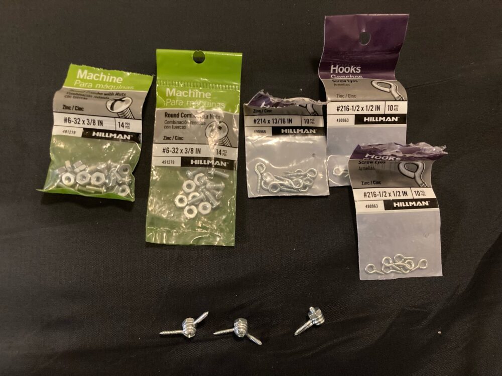 First, there’s these hardware parts leftover from some previous projects of mine. Most of these will be for decoration, but at the bottom there’s some rudimentary hinges I’d made that might be cool to use somewhere – maybe some kind of ‘flapping wing’ design.