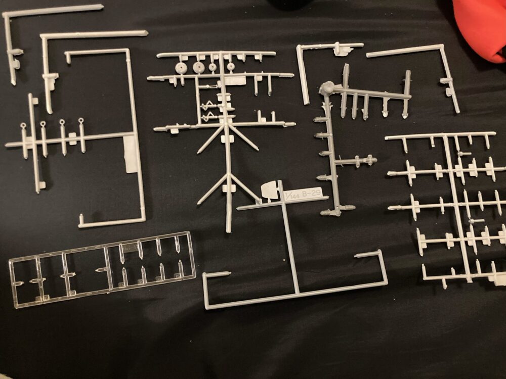 Next, some parts I’m really excited to put to use: these are sprues from some of my dad’s old model kits. There’s a lot of cool ways I might be able to take this apart and reuse them to create some convincing-looking machine framework. There’s even some extra wheels in there I can use for landing gear.