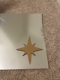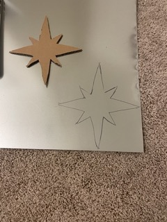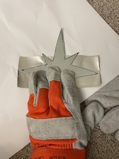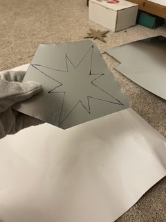 This week I began fabrication of the starburst. I dimensioned and cut the template out of cardboard before I traced it onto a sheet of aluminum I had from a pervious project. I used tin snips to cut out this starburst and started comparing it with one of the flattened soda cans I’ve collected.