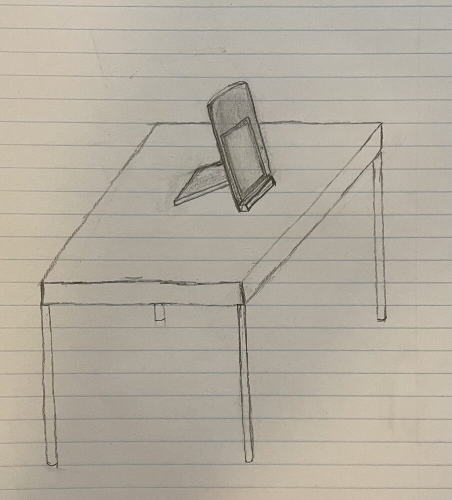 I have thought about ways that I could style my project so that it fits into the corporate office aesthetic. First off, the concept of an iPad holder fits perfectly into this aesthetic, but I would have to do a lot of work with the materials I have chosen to make them fit into the aesthetic. I do not see how I would be able to use the wheels or trucks in the design, but the deck could definitely be used. Below I have sketched a possible design using the skateboard deck.