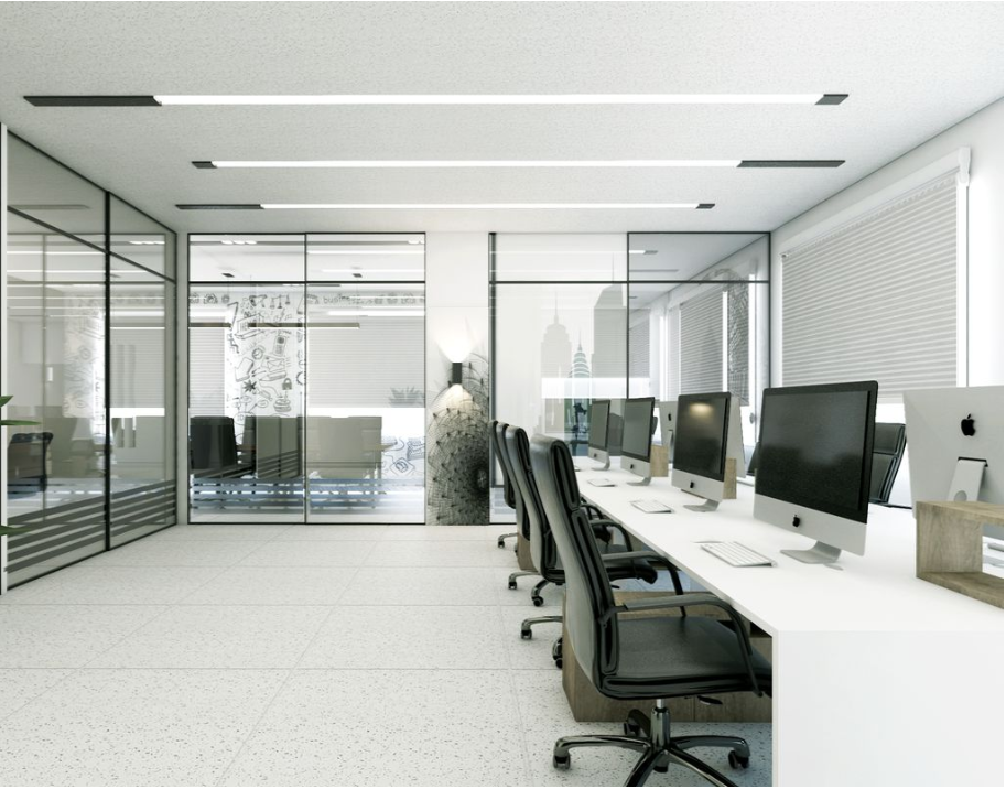 I found some images that I believe reflect this aesthetic. Over time this aesthetic has transformed a little as designers are trying to make work environments more positive and comfortable, but the images below reflect the corporate office aesthetic that I am picturing.