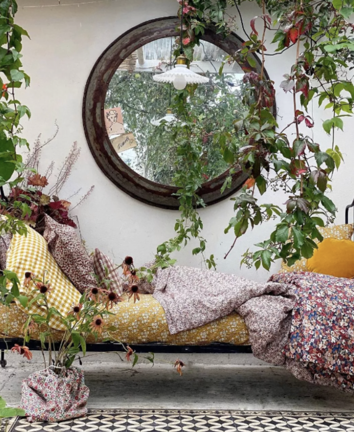 These images by Natural Life(1) and SpaceWise(2) showcase cottagecore well, where patchwork clothing is included.