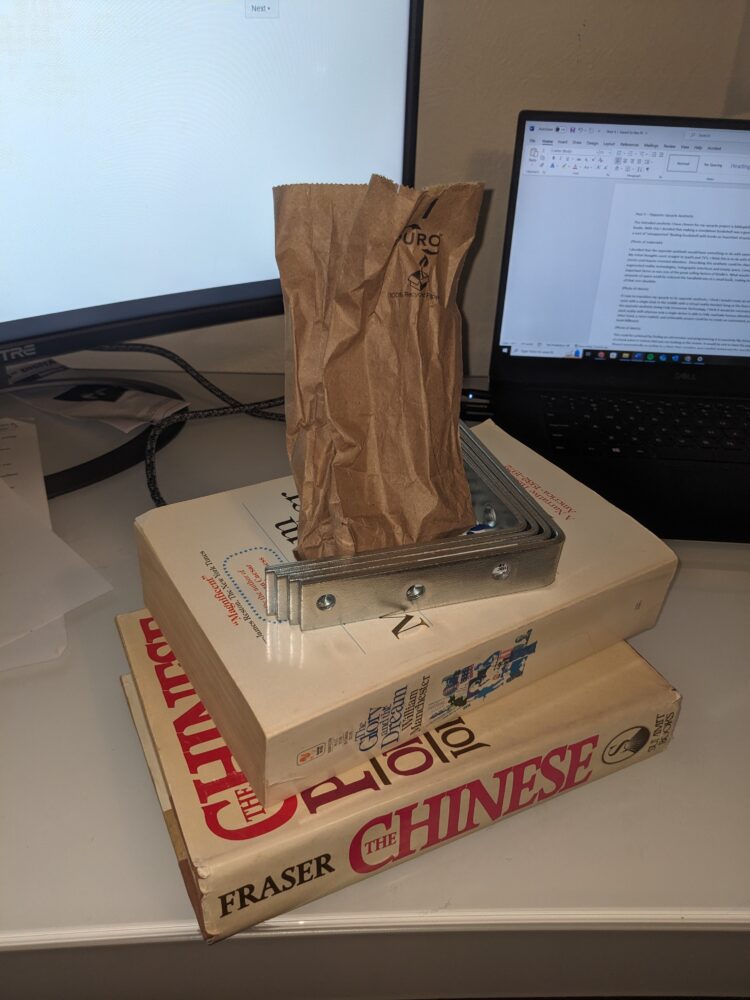 The intended aesthetic I have chosen for my upcycle project is bibliophilia, being related to the love of books. With this I decided that making a standalone bookshelf was a good idea. This has transitioned to a sort of ‘unsupported’ floating bookshelf with books as important structural aspects of the assembly.