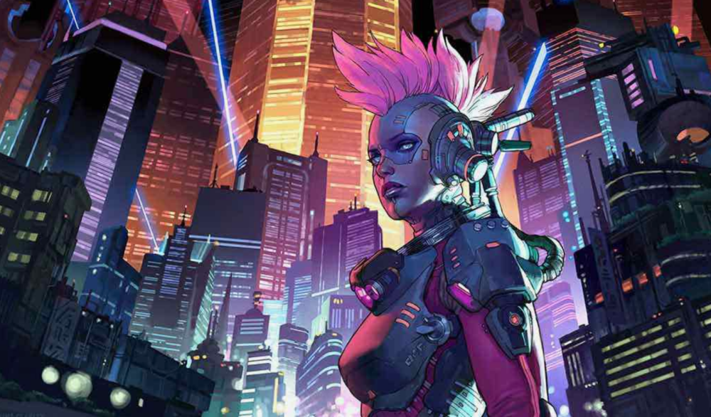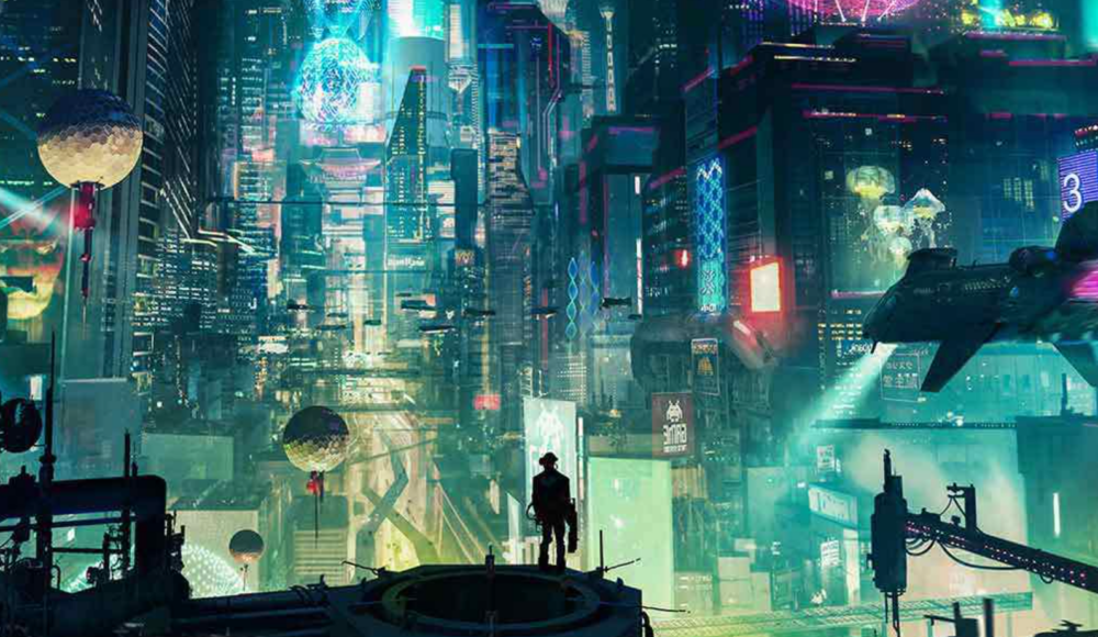 As you can see, this piece by Artur Sadlos includes bright colors, flying vehicles, floating disco balls, and intensely complicated city buildings and lights. This is very different from Steampunk, which would have a more brown-grey color base with simplistic buildings and steam engine technology. Another example of Cyberpunk is below: