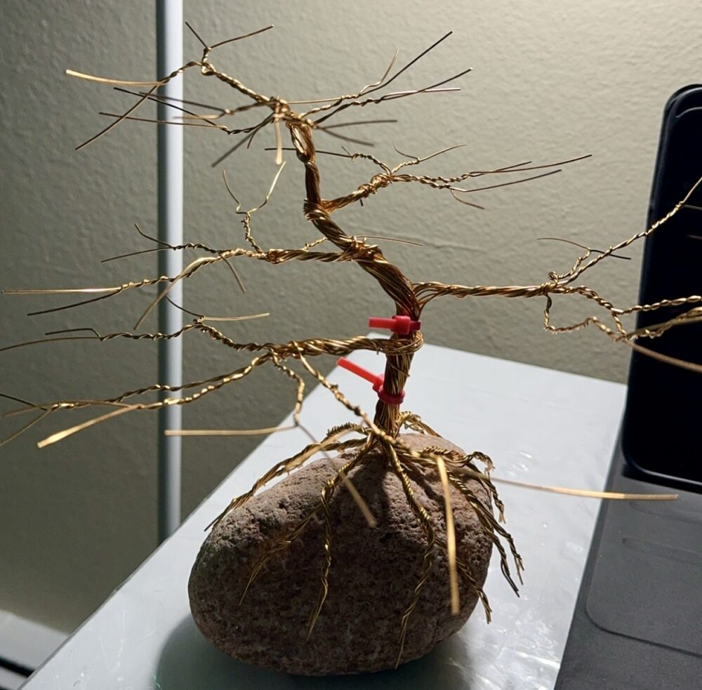 I successfully transformed discarded wires and stones into a visually captivating bonsai tree, meeting both functional and artistic objectives. The artifact embodies the essence of Japanese Bonsai, fulfilling its aesthetic requirements.