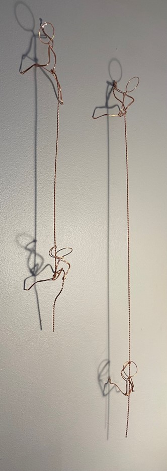 For the final stage of my project I needed to tie together my climber to the rope I had just completed. To do so I took inspiration from various images of rock climbers that I had posted in my upcycle progress post. With patience and pliers I was able to manipulate both the appendages of my climbers and the copper rope to connect the two in a way that looks natural and realistic of true rock climbers. I proceeded to make the decision to create two sets of climbers one of which resembles that of people ascending a mountain and one of which resembling people descending a mountain. In the conclusion of my project I am very pleased with how everything worked out and I am happy to have a new piece of wall decor to look at for many years to come. Below are images of the build process and completed project. I hope this project can provide anyone with inspiration to complete a project like this for themselves.