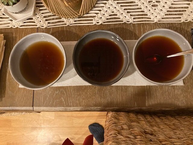 Once dried, I then dipped half of the already dipped section of each page (about 1/4 of the total page) back into it’s respective tea in order to compare the original page color to being dipped once and twice in each tea.