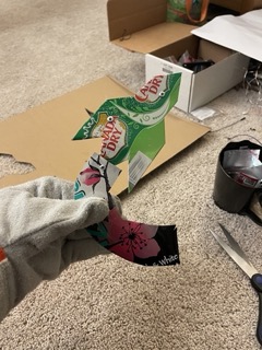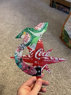 Artistically I was happy with my design. I like the combination of the starburst and rockets and think that on paper it looks very nice. However in my opinion it became to cluttered with the mismatching can designs. I enjoy the individual aspects, such as the Coca Cola starburst. But all together I find it messy. If I redid this project I would have better planned out what designs/colors I wanted to incorporate and made sure those were more compatible.