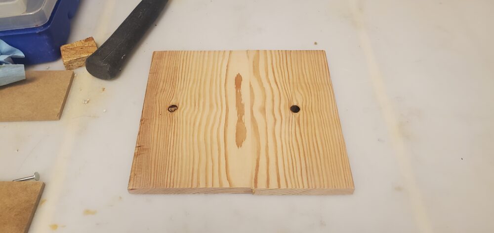Following this, I then drilled holes into the plate and sanded it down to be unblemished and ready to be coated in linseed oil. The final wooden block is shown in the following image: