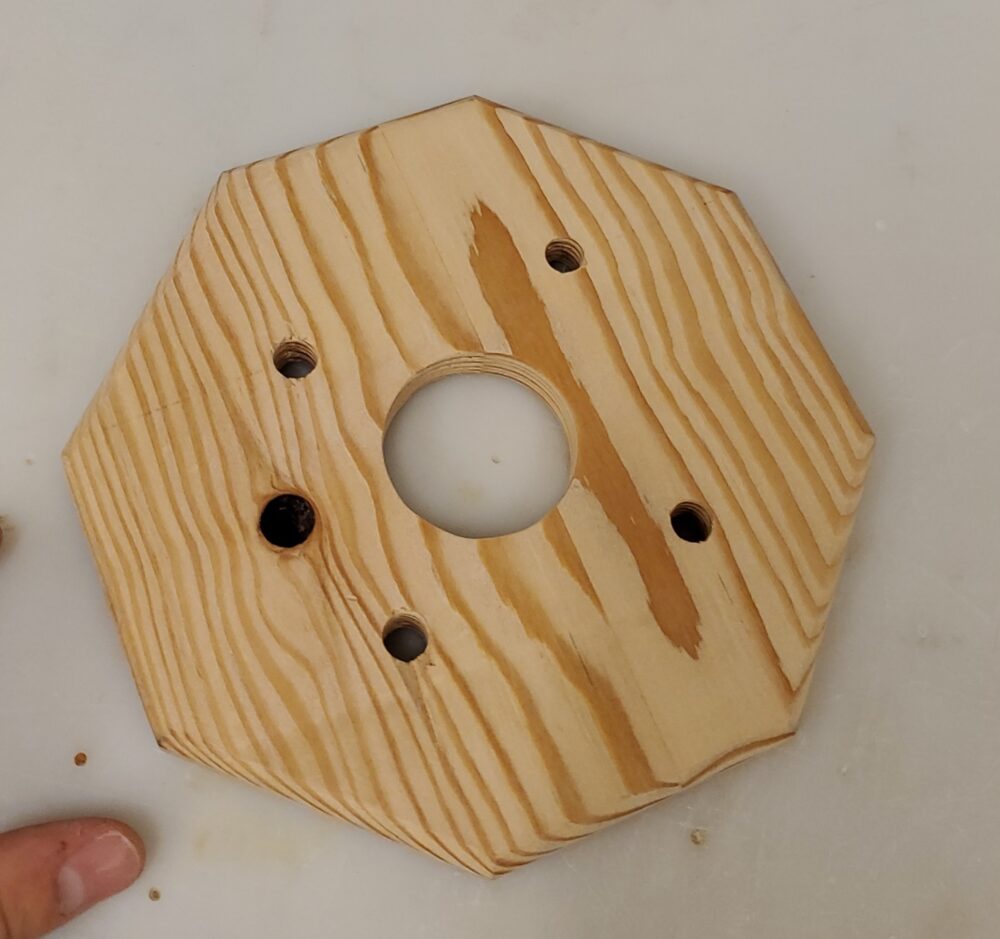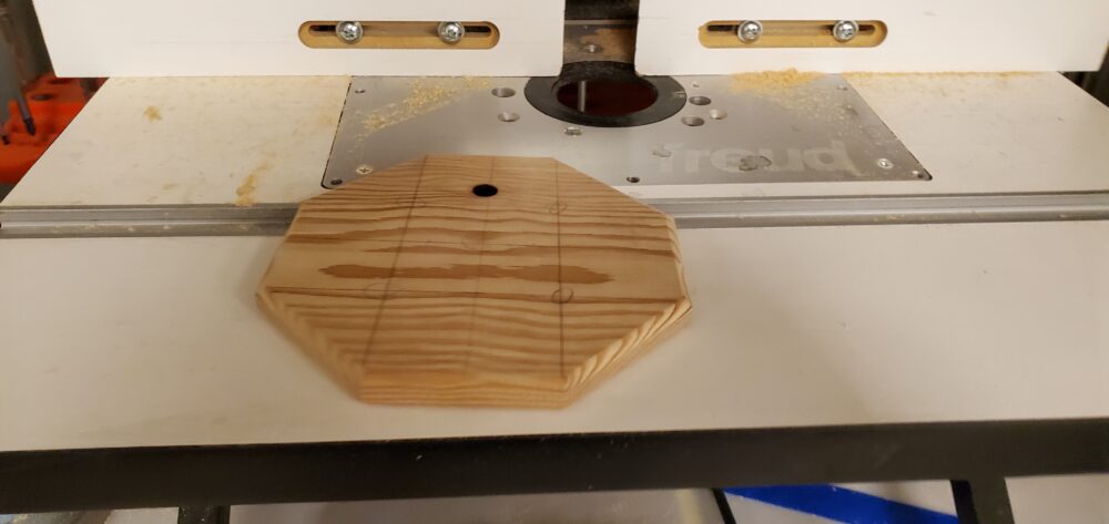 After planing down the wood, I cut the wooden block into an octagon and the used a routing tool to round out the corners to look more professional. A photo of this step is shown below.