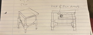 Here are some sketches of a Steampunk table with a wooden top and metal bottom. For the dynamic element I am imagining an exposed rack and pinion style drawer mechanism.
