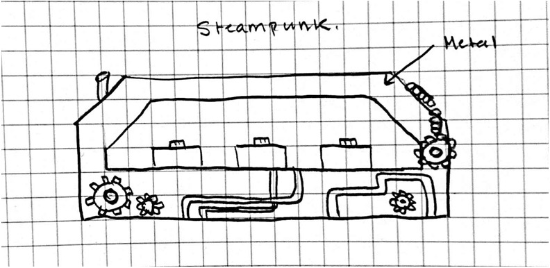 An alternative or opposite aesthetic might be Steampunk, Steampunk is filled with complexity and varying textures and tones. This would be a fun project to make as I could incorporate metal tubes and gears into the design, possibly with some functionality to them. While I think that this might be a more fun project tot manufacture I don’t think it fits the design intent of a charging station as well as a minimalist aesthetic would.