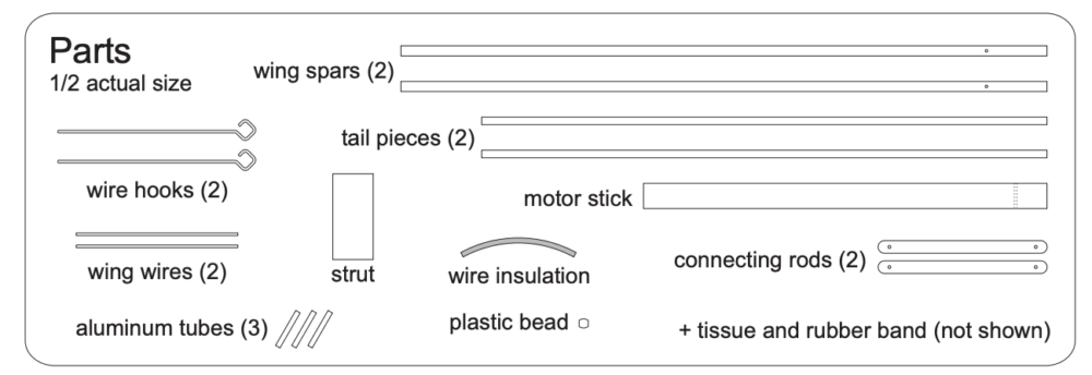 I had a bit of trouble finding any of the right materials for the “local hobby store” like the instructions had indicated. So I turned to getting my materials online. Some of the parts were difficult to find and the instructions used a bit of jargon that I was not familiar with like model airplane rubber or model airplane tissue as a few examples. That made the process a bit more stressful because I didn’t want to waste the material or the time or money it would cost to correct the mistake. But, once I had most things ordered it was time to wait.