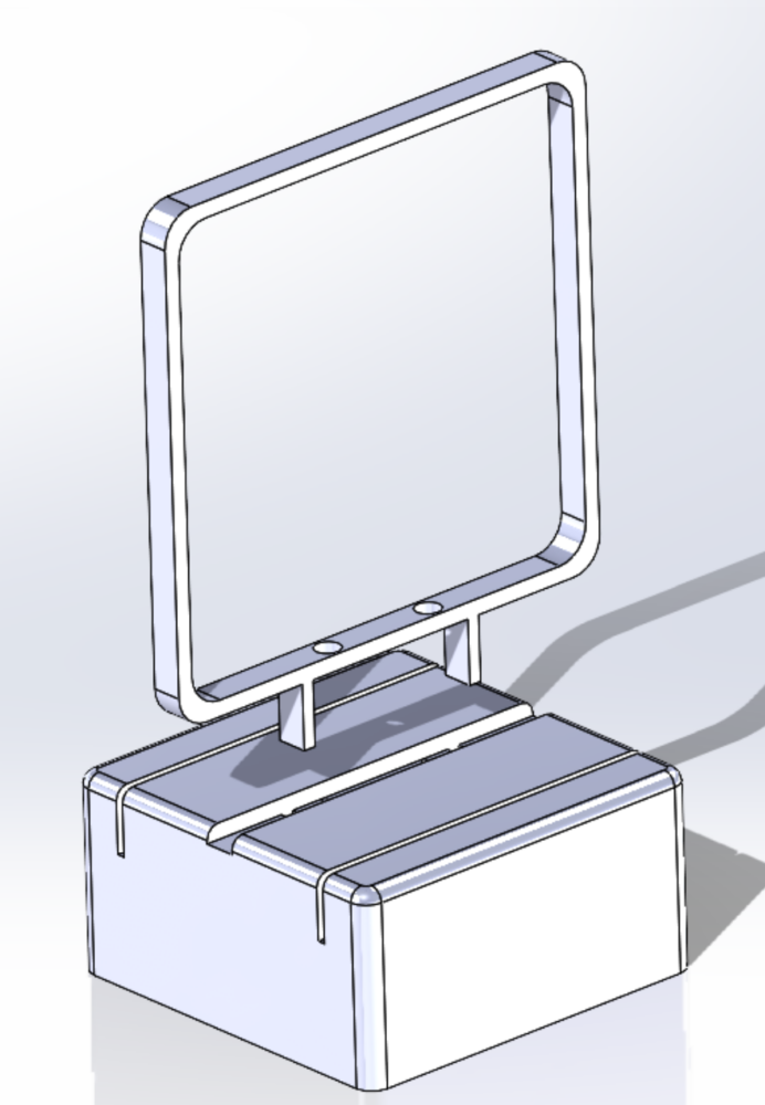 My frame design was meant to be simple and not distracting to a viewer. As you can see, I had to not only split my base, but also remove the filets from the edges in order to 3D print properly. I believe that my end result hit my vision of the project perfectly, and I am thankful for the peer feedback and help I received from the ITL and Idea Forge staff in creating my product.