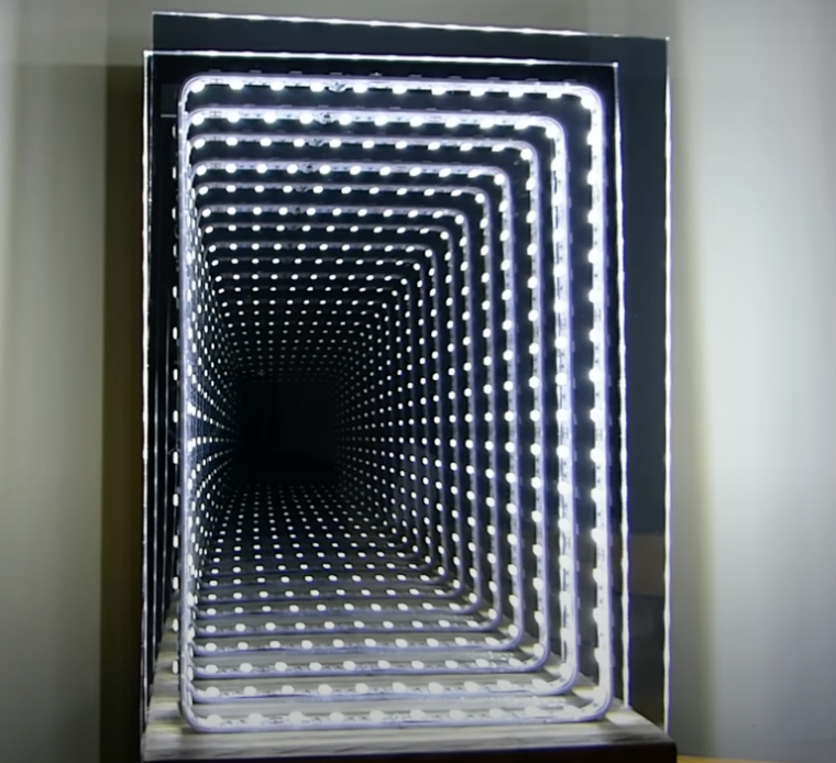 I am planning on attempting to nail this aesthetic by creating an infinity mirror, preferably in a geometric shape such as a hexagon. This will have LED lights around the outside, that reflect to the inside, to hit the Abstract Tech aesthetic. My inspiration for this design is from a YouTube video I recently watched. I have included a screenshot of my inspiration below.